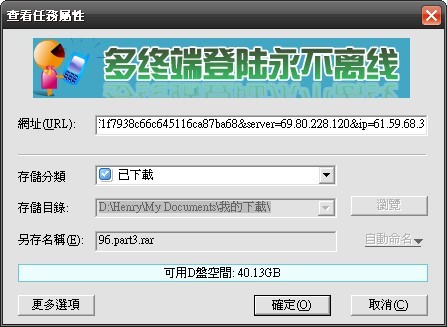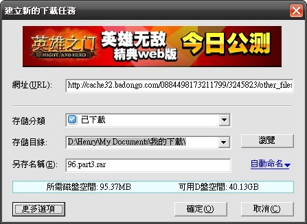 使用續傳軟體下載免費空間的檔案