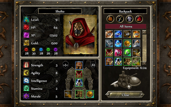 3. 裝備增加至六欄位,種類增多,主手跟副手可以拿武器、盾牌、藥劑