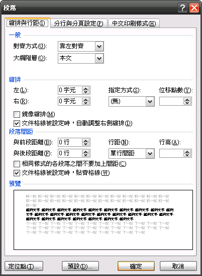 ▲段落對話框的內容就只有這樣,且我把裡面所有內容都看過,沒有網路上的做法