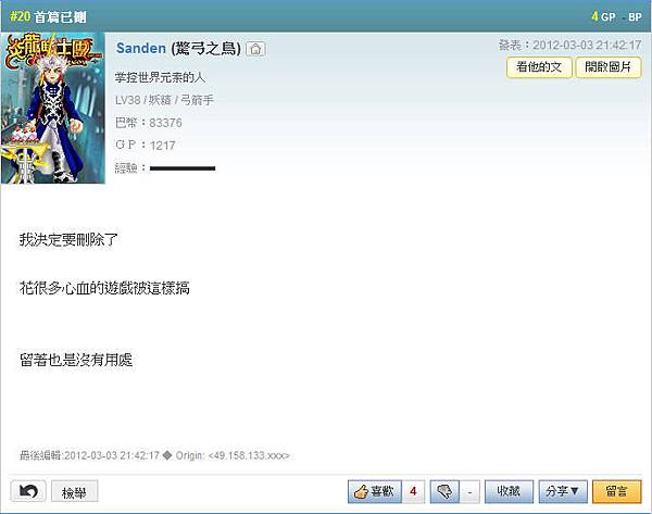 導致遊戲作者在巴哈姆特刪了自己的遊戲,並留下這些話
